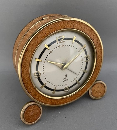 CUIRIC 1480-71 cuir naturel CUIRIC , réveil de voyage , mouvement mécanique , calibre CS , 7 jewels. Nouveauté du catalogue 1978 à la page 15 . Coque plastique gainé de cuir , aiguilles et points lumineux .