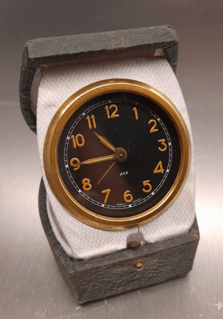 Avant guerre le concept de réveil de voyage n’existait pas en tant que tel … à l’instar des pendulettes d’officier qui disposaient d’une boîte de transport , Jaz proposait des écrins solides permettant de transformer un réveil de table de nuit en objet nomade . En 1942 ce sont trois réveils ,spécifiquement destinés aux voyageurs , qui sont au catalogue avec les PARIC , MUTIC et ce LOBIC .