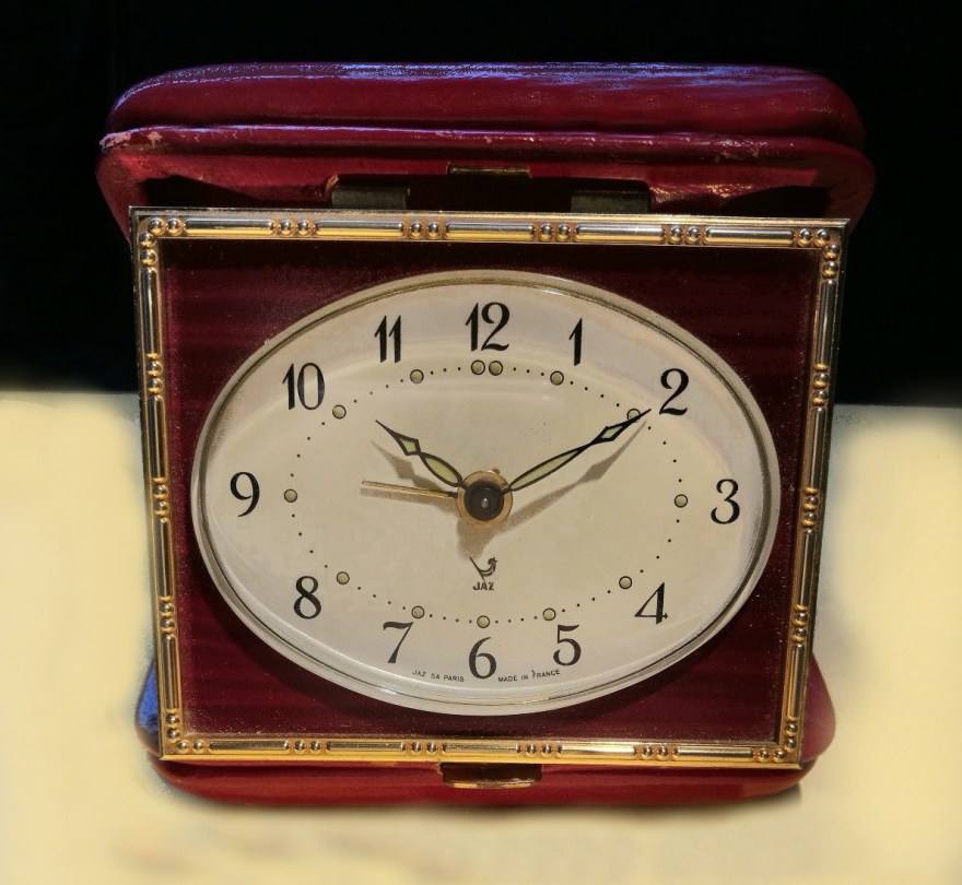 GALVIC , petit réveil de la gamme Jaz Quartz, à sonnerie par moduleur buzzer, silencieux, mouvement électrique à pile LR6. Nouveauté dans le catalogue 1982 à la page 10 , référence de base 8153 . Cadre en plastique doré, façade colorée noire , rouge ou brune , chiffres romains , vitre plate en plexiglas , aiguilles poires puis feuilles suivant les modèles , aiguilles et points lumineux . Format 8,1 x 7,6 x 2,6 cm , poids 95 gr sans pile . La dénomination GALVIC avait déjà été attribuée en 1974 à une horloge , faisant dans les deux cas allusion au procédé d’électroformage des boîtiers anciennement appelée GALVanoplastie.