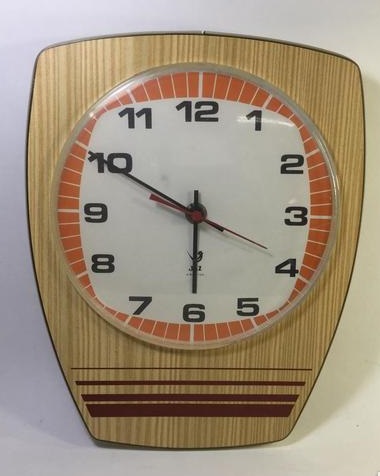 Jaz Electrico, horloge murale, calibre TM à pile LR14, trotteuse centrale rouge, format 280 x 215 mm. Existe en version à dateur. Hors catalogue France, présente au catalogo 1981/1982, export Espagne, référencée 5010.
