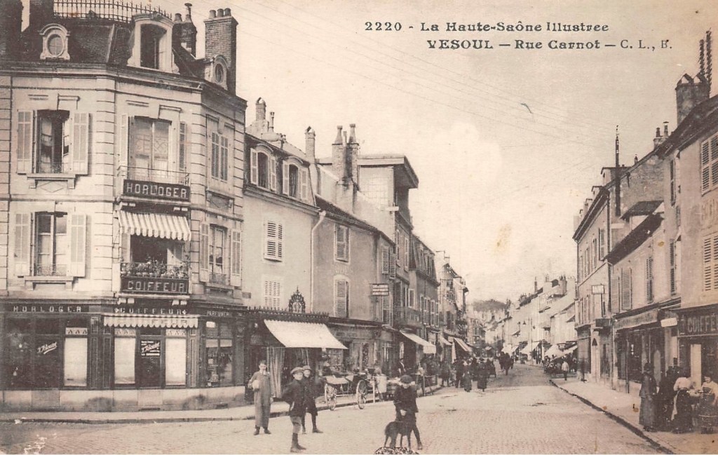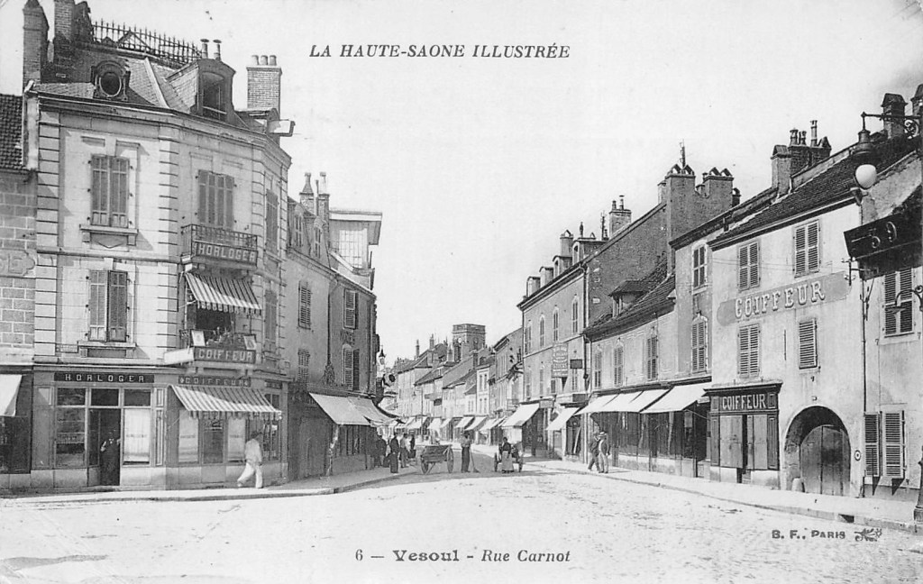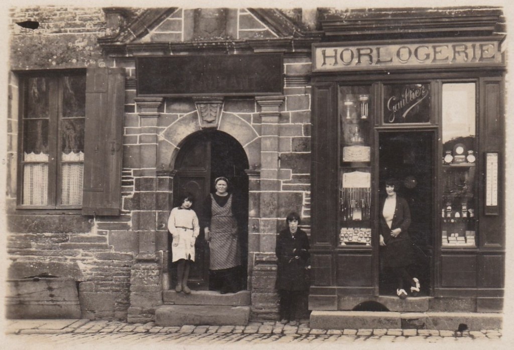 Aussi étrange que cela paraisse Erouart n’est pas le seul horloger cafetier comme la maison Berthaux , à La Gacilly dans le Morbihan, même si les deux activités sont nettement séparées, son Café du Commerce ceinturant son horlogerie qui commercialisait cycles, machines à coudre et armes, comme tant d’autres. Dans les Côtes du Nord à Collinée, ses deux fenêtres flanquées de volets font office de vitrines côté rue.côté cour, on trouve une vitrine plus classiquePlus tard celui-ci fait refaire sa façade afin de mieux afficher ses activités qui comprennent un café et la vente d’huiles moteurs. Il n’est pas certain que l’Horlogerie Bijouterie Mollé a longtemps cohabité avec le Café des Sports , il semble que celui-ci l’a finalement remplacé.Vesoul rue Carnot, à gauche cohabitation très inusitée entre un salon de coiffure et une horlogerie alors qu’un autre coiffeur occupe le trottoir d’en face.Il apparaît nettement sur cette carte postale que le nom, et même le prénom, sont les mêmes sur la vitrine de l’horloger et du coiffeur, sans que l’on puisse imaginer aisément le passage d’une profession à l’autre.