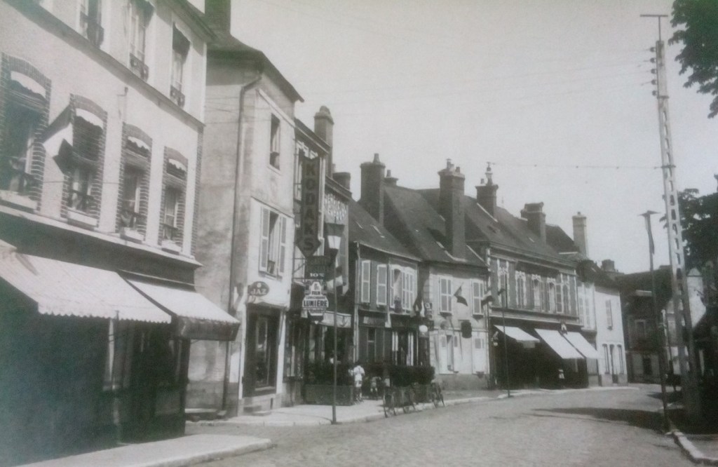Cette photographie n’est pas très démonstrative en matière de cycles, ou de lunetterie, en revanche sa qualité est telle qu’elle permet les agrandissements, ci-après, qui montrent comme rarement les détails d’un commerce d’horlogerie du début du XX° siècle.Thermomètres suspendus et cartes postales de la commune: Bouzy près d’EpernayGros réveils à cloches au sommet et goussets à profusion: aucune montre bracelet.