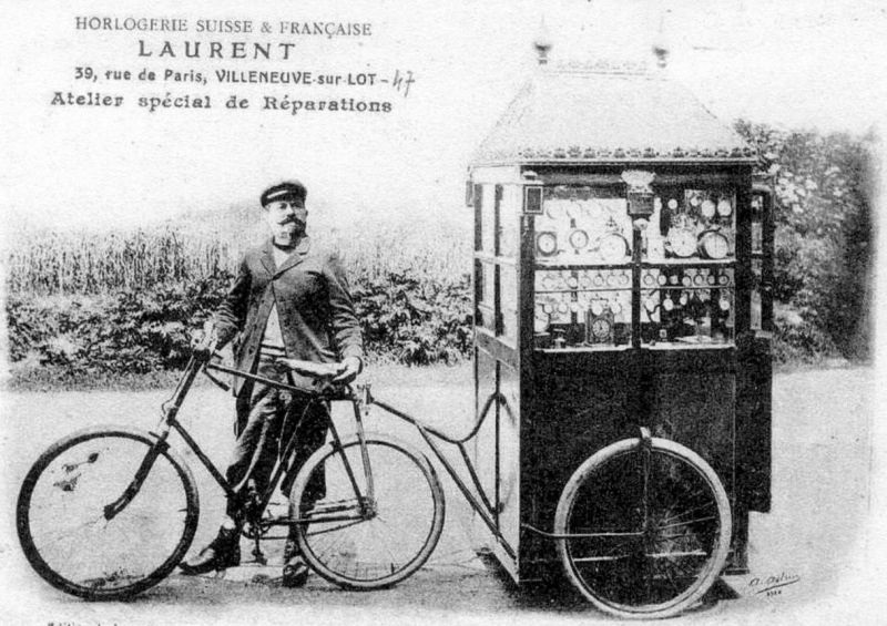 La profession de réparateur en horlogerie peut se contenter d’un espace extrêmement restreint pour s’exercer. La mobilité de ces micro-commerces permettait de suivre les foires très fréquentées à l’époque, le commerçant pouvaient même effectuer quelques petites ventes d’horlogerie.