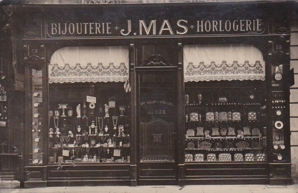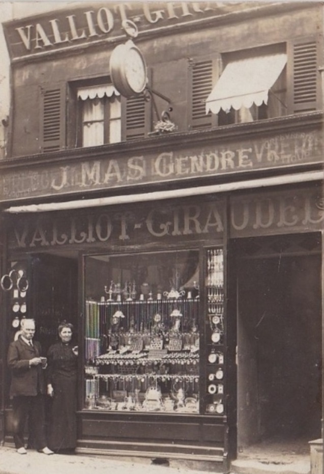 La maison Valliot-Giraudel, J. Mas gendre ne comportait à l’origine qu’une vitrine et faisait l’optique en plus de l’horlogerie.Lorsque la boutique triple de volume, on conserve l’optique et l’on ajoute baromètres et statues dans les vitrines; il est évident que la taille des boutiques influent sur le type d’activités.