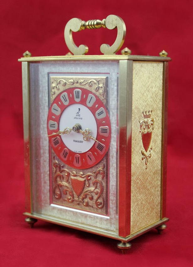 Ce type d’aiguilles et ce genre de pieds n’ont jamais été employés par Jaz pour d’autres réveils; ce réveil est à rapprocher de sa version avec bélière . Le calibre Z est identique à celui du modèle à bélière, sauf l’inscription portée en bas et non sur le côté