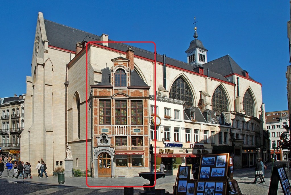 La façade de cette petite maison se trouvait rue de l’Étuve jusqu’en 1929. Elle fut démontée et reconstruite contre l’église Saint-Nicolas.