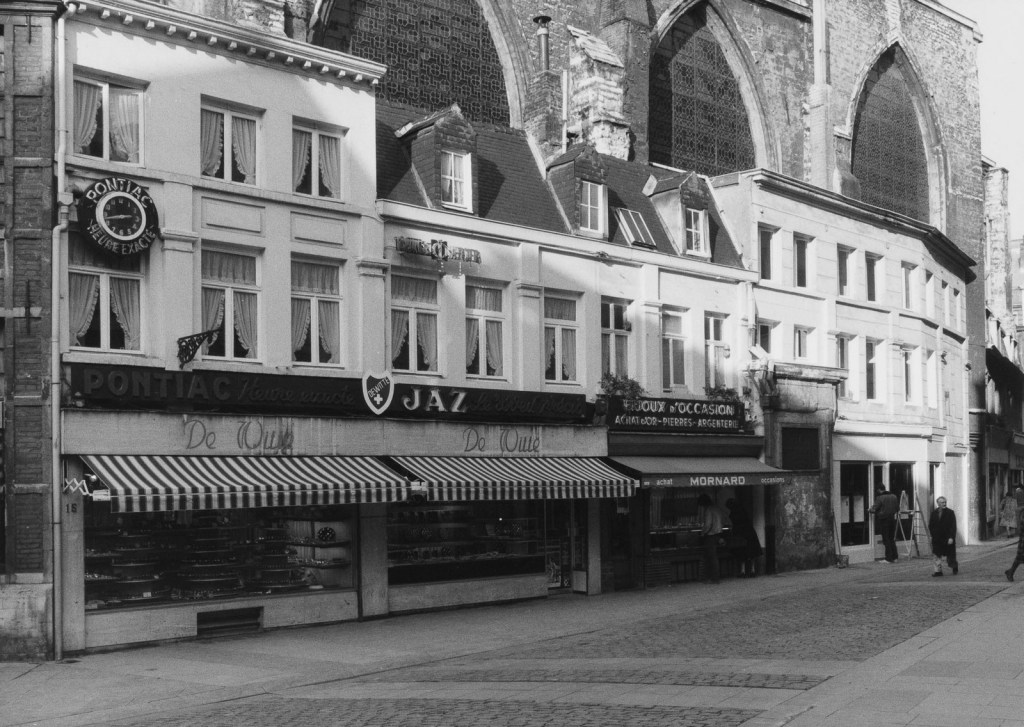 En conséquence De Witte occupait de ce côté de la Petite Rue au Beurre, deux boutiques contiguës dans des bâtiments distincts, si bien qu’au fil des années et des configuration des aménagements, la maison aura une seule voire deux entrées distinctes. Les temps ont changés, le goût est à l’épure et les publicités ostentatoires et lumineuses des marques de montres et de réveils ont disparues.
