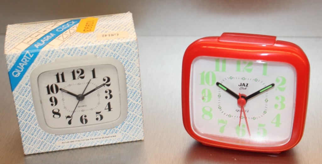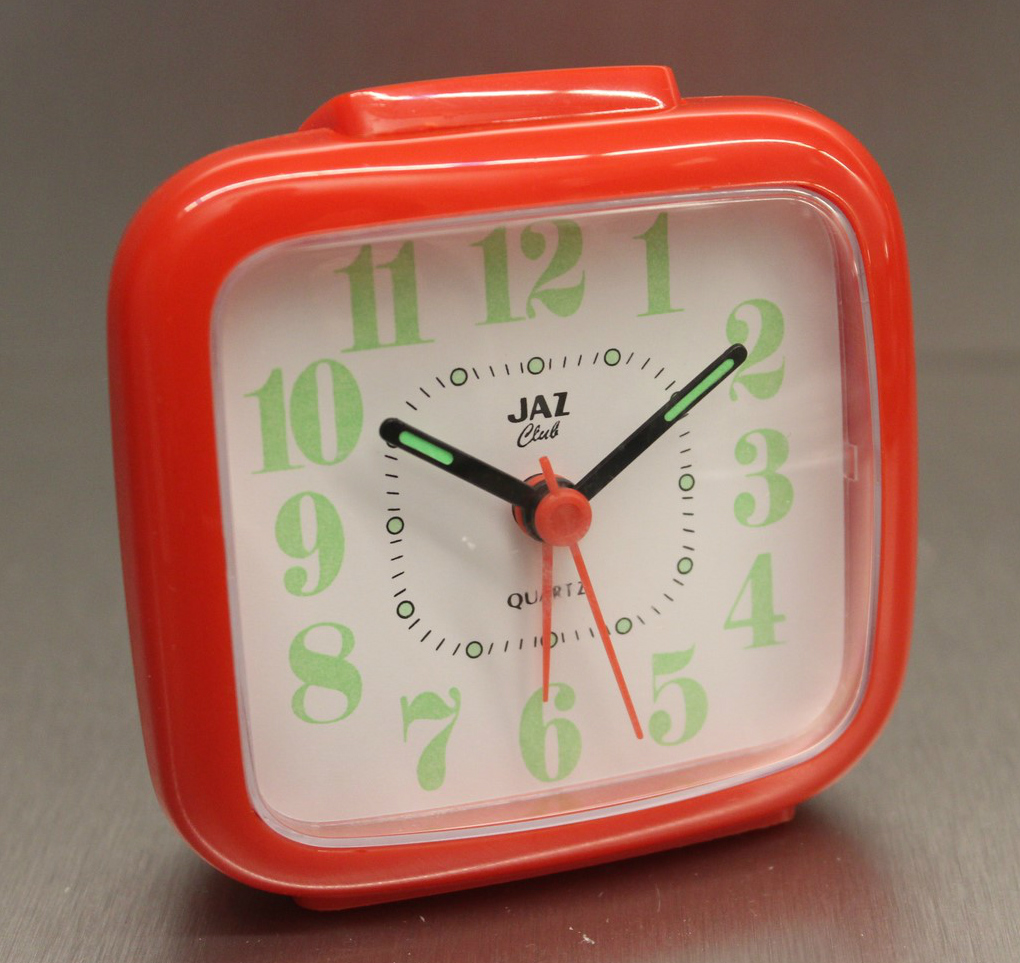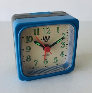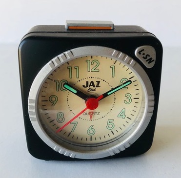 8254/8255/8256/8257 BABY SMART Petits réveils de la gamme JAZ CLUB 1997/1998 , mouvement quartz à pile LR6, à répétition de sonnerie, à éclairage de cadran par bouton en façade, sonnerie progressive crescendo, arrêt de sonnerie au sommet, trotteuse centrale . Réf: 8254 gris métallisé, réf: 8255 noir métallisé, réf: 8256 bleu métallisé, réf: 8257 bleu métallisé, lunette grise. Format: 6 x 6,1 x 3,1 cm..