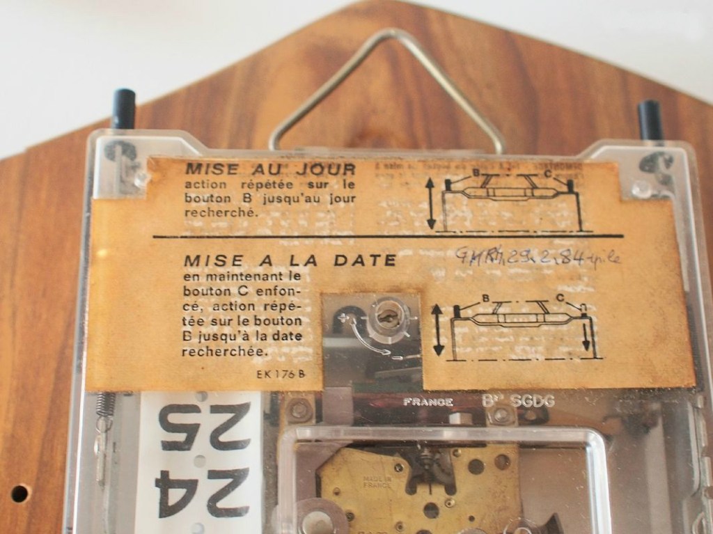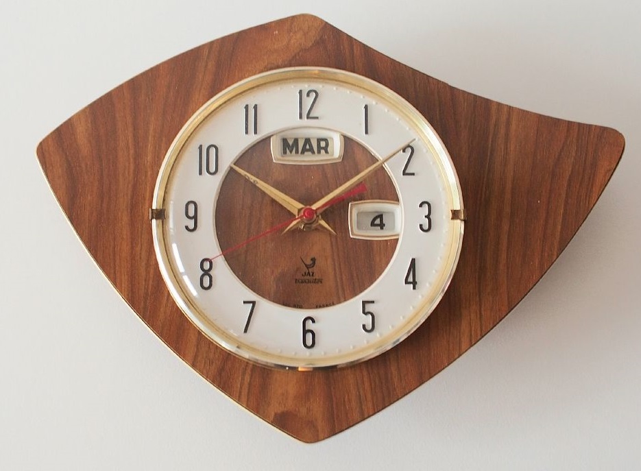 FICHIC 2703-60. FICHIC , horloge murale , à dateur jour et date , gamme des Jaz Transistor et Jaz Dator , mouvement électrique à pile LR14 , calibre 2CF , licence ATO . Nouveauté du catalogue 1967/68 à la page 15 . Sa forme de poisson est à l’origine de son nom FICHIC = FISH.