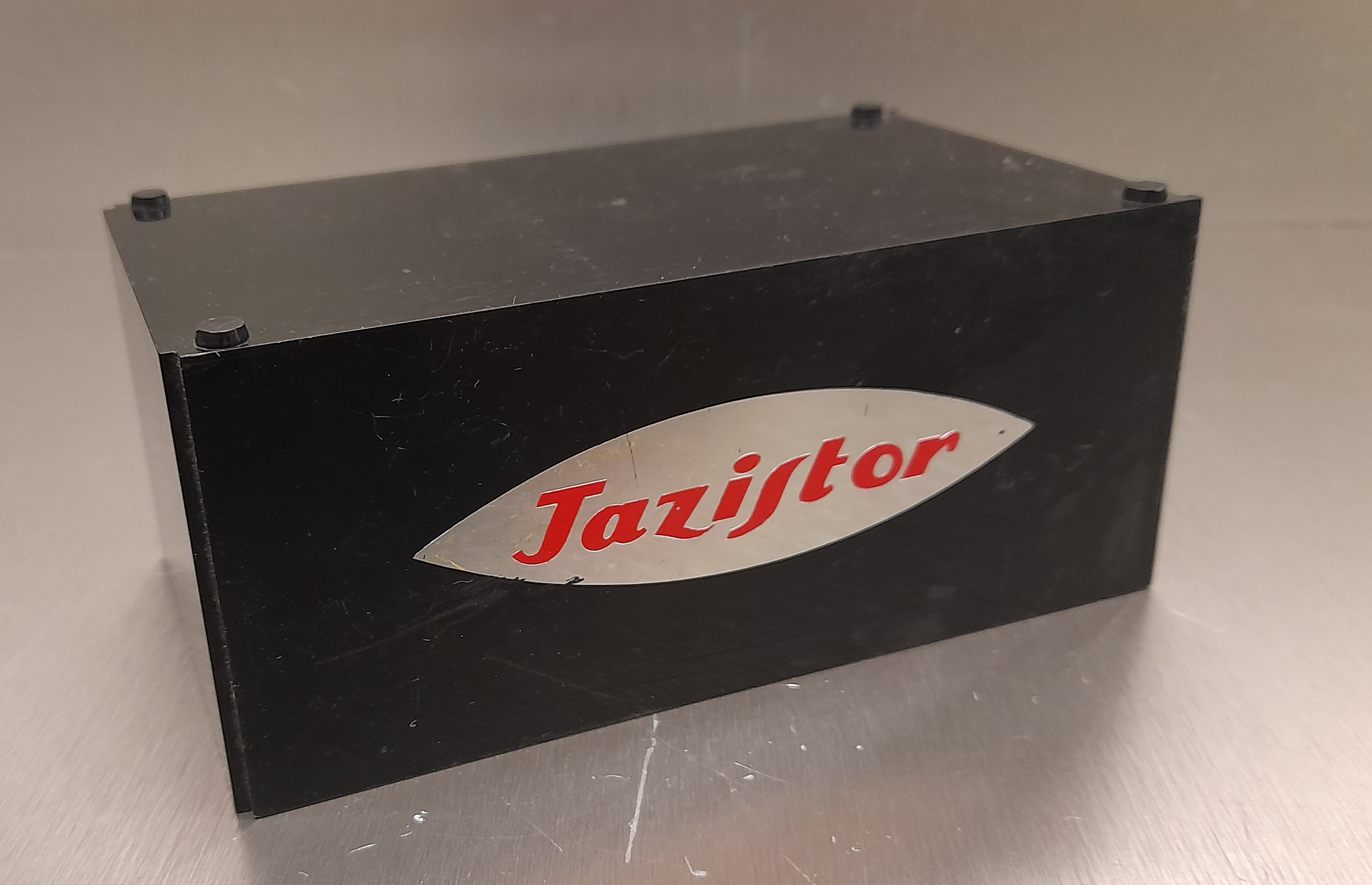 Boîte pour Jazistor , carton , 14 x 11 x 8,5 cm . Les références 2446-71 sont celles d’un