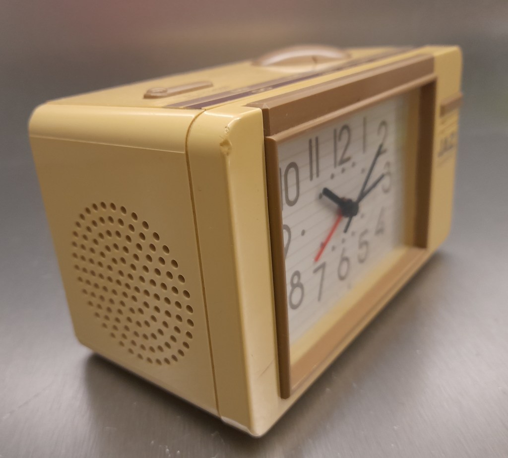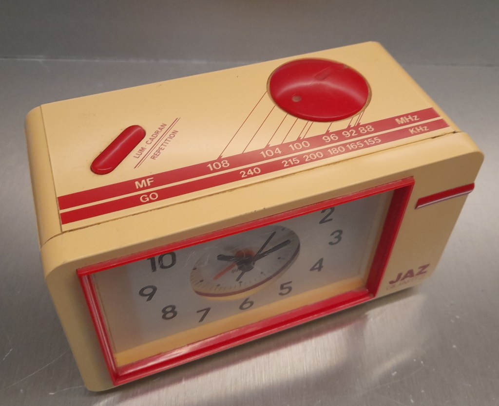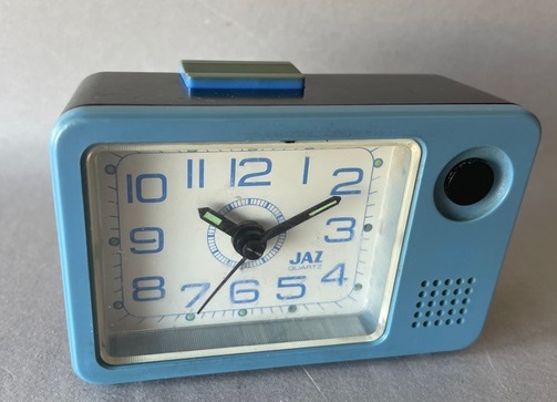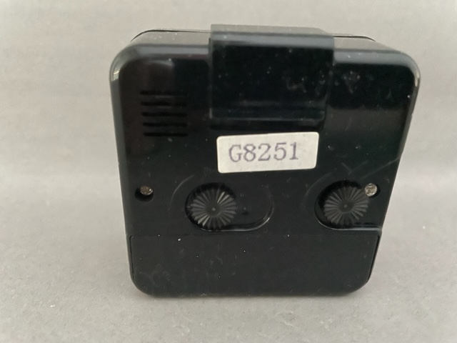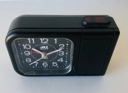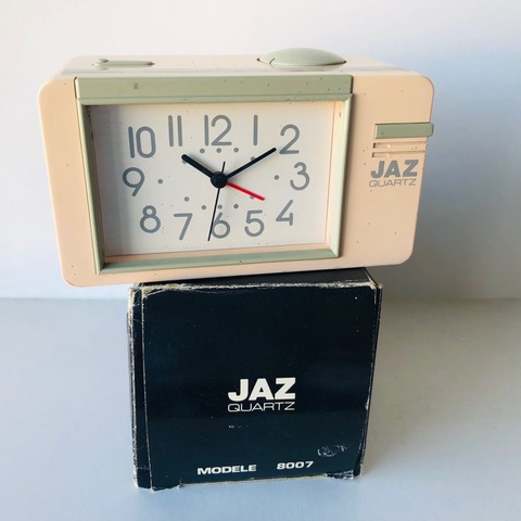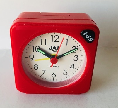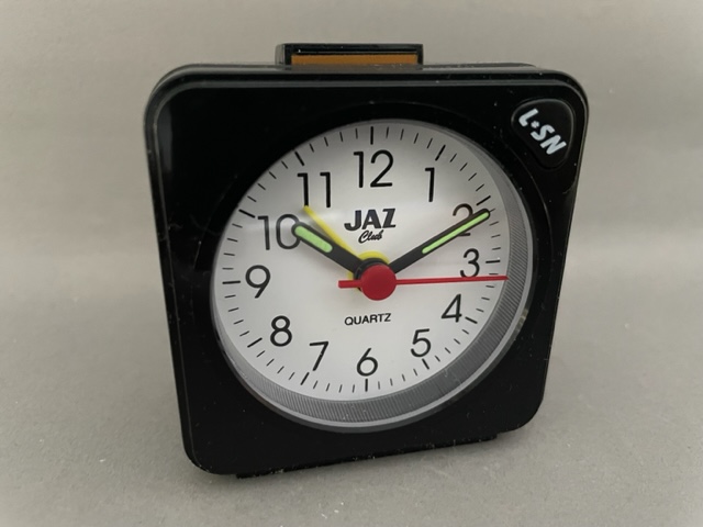8254/8255/8256/8257 BABY SMART Petits réveils de la gamme JAZ CLUB 1997/1998 , mouvement quartz à pile LR6, à répétition de sonnerie, à éclairage de cadran par bouton en façade, sonnerie progressive crescendo, arrêt de sonnerie au sommet, trotteuse centrale . Réf: 8254 gris métallisé, réf: 8255 noir métallisé, réf: 8256 bleu métallisé, réf: 8257 bleu métallisé, lunette grise. Format: 6 x 6,1 x 3,1 cm..