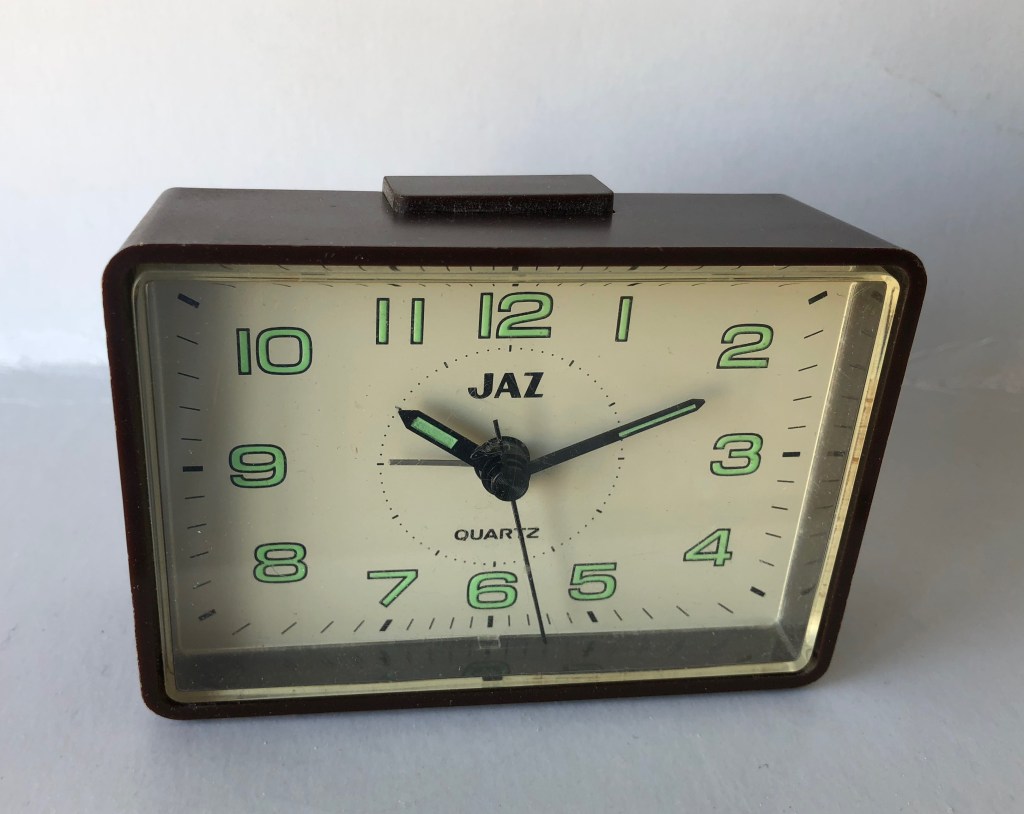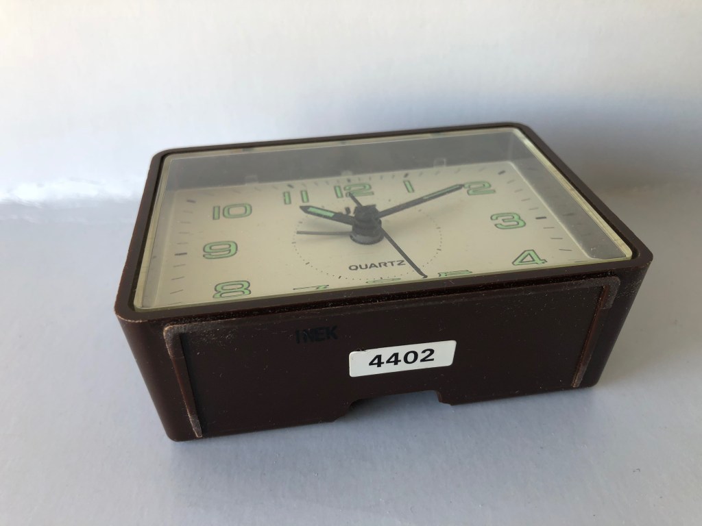 4388/4389/4390 réveil rectangulaire , gamme Jaz quartz , à pile LR6, trotteuse centrale , arrêt de sonnerie au sommet, corps plastique disponibles en trois couleurs: blanc 4388, bleu 4389, rose 4390. Made in Japan. Bouton en façade de l’éclairage du cadran . Format 8,5 x 5,5 x 3,5 cm. Présent uniquement dans le catalogue de l’année 1990 dans la catégorie Les Pratiques