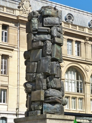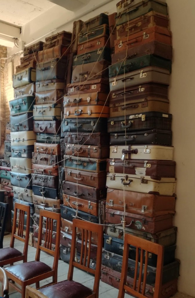 L’accumulation de bagages du musée italien est plus proche de la présentation des 78 valises des victimes du Docteur Petiot, lors de son procès en 1946, que des superbes accumulations de valises de la gare Saint Lazare, nommée Consigne à vie, du plasticien Arman .