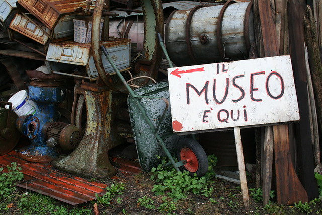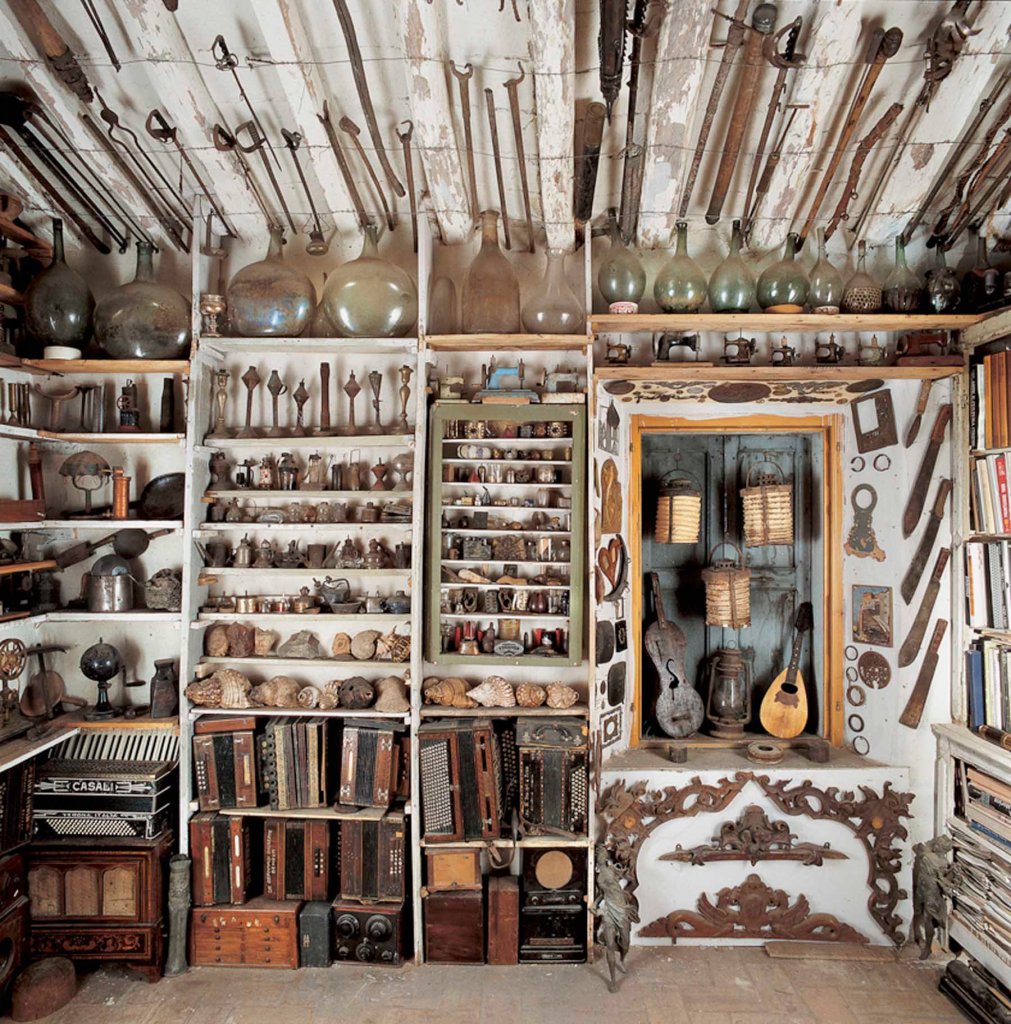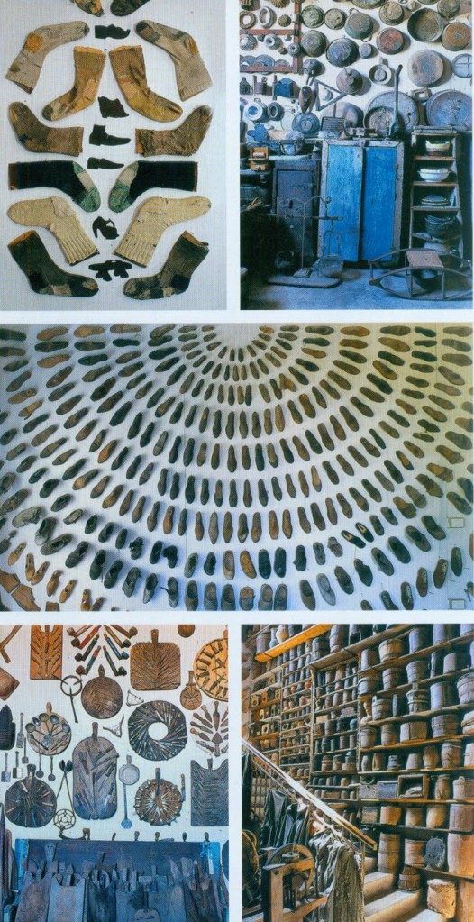 Ettore Guatelli ( 1921+2000) était un instituteur d’Émilie-Romagne qui a créé un véritable musée dans une ferme près de Parme, à Ozzano Taro. Pas un musée paysan ou un musée de la civilisation paysanne, comme il y en a tant, avec charrues, plats en cuivre dans la cuisine et outils pour filer la laine ou moissonner. Ses salles sont chargées jusqu’au plafond de 60.000 objets quotidiens.