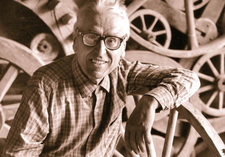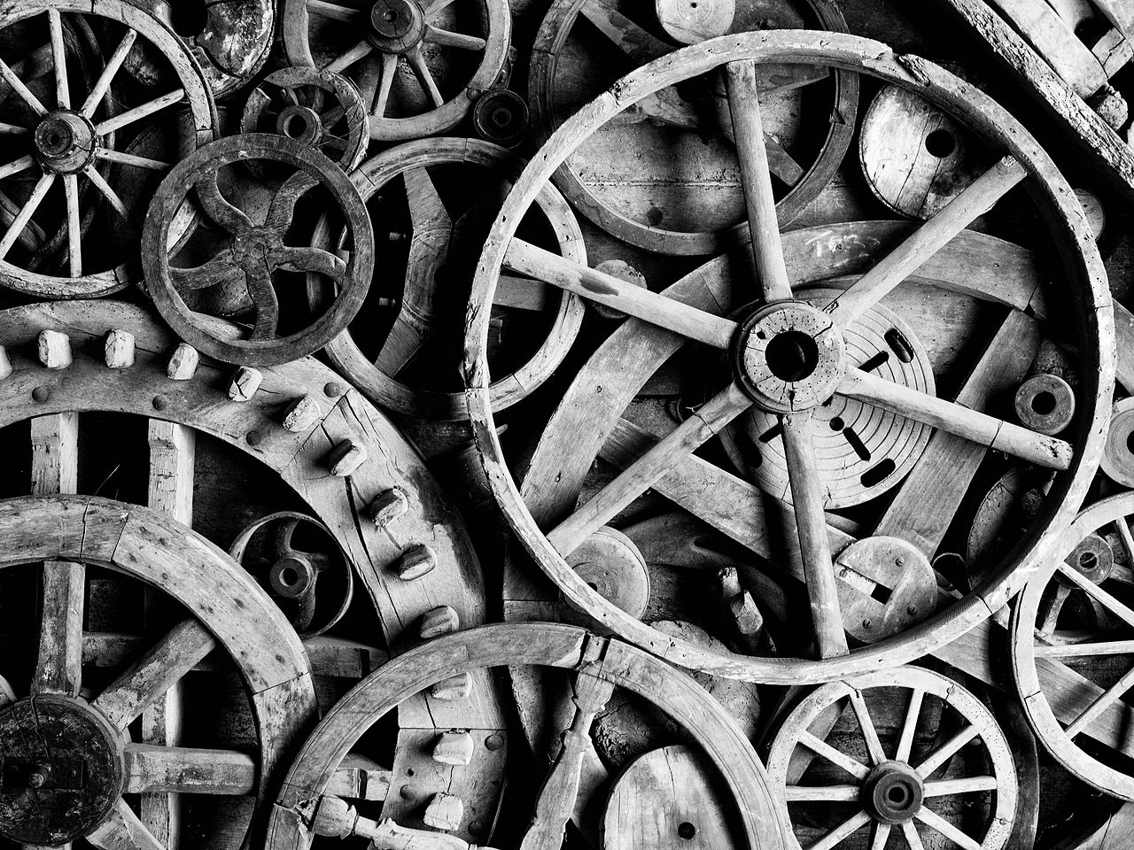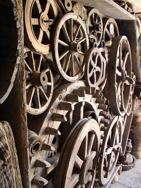 En revanche, il arrive que son talent naturel force le respect comme ces roues de charrue assemblées comme un mécanisme d’horlogerie