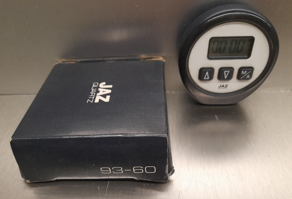 La vitre en plastique a tendance à jaunir même pour cet exemplaire , neuf de stock , jamais vendu , conservé 70 ans à l’abri de la lumière dans sa boîte . Dans son catalogue Jaz précise que le verre est incassable , ce qui est judicieux pour un réveil de voyage , mais le terme « verre « est abusif , il conviendrait mieux d’indiquer « vitre » puisqu’il s’agit d’une matière plastique transparente .