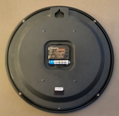 6974 Horloge à quartz circa 1999 ou 2000, quartz à pile LR6, chemin de fer, aiguilles poires , trotteuse centrale noire, corps rond bois teinté acajou, lunette en chrome. Diamètre: 30 cm. Pile LR6