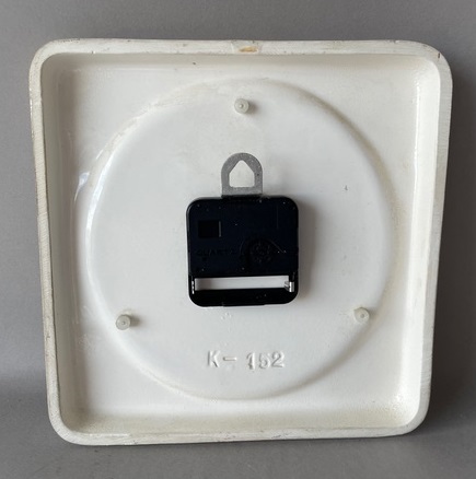 6546 horloge murale carrée en céramique blanche, mouvement quartz à pile LR6, aiguilles noires , trotteuse centrale noire, , lunette inox , vitre bombée en verre, nouveauté du catalogue 1990 disponible jusqu’en 1994