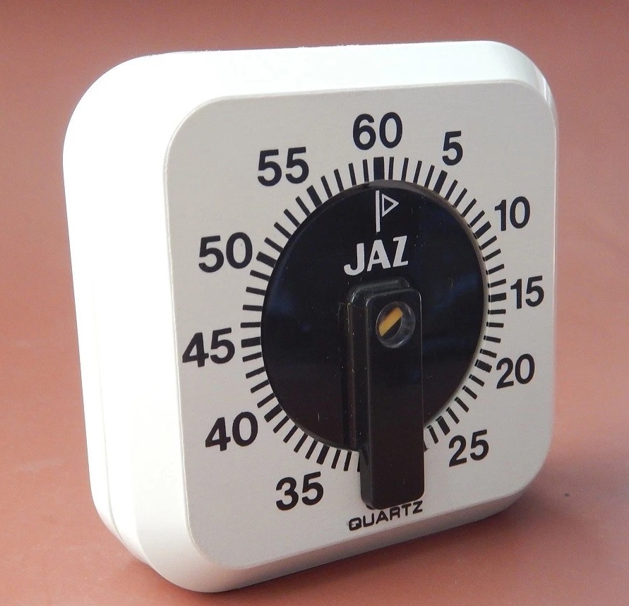 2104/2105 minuteur à quartz à pile LR6, 60 minutes, corps carré en plastique de couleur beige réf.2104 ou brune réf.2105, format 7 x 7 cm. Nouveauté du catalogue 1986 page 47 disponible jusqu’au catalogue 1988/1989; la version brune 2105 n’est disponible qu’en 1986.