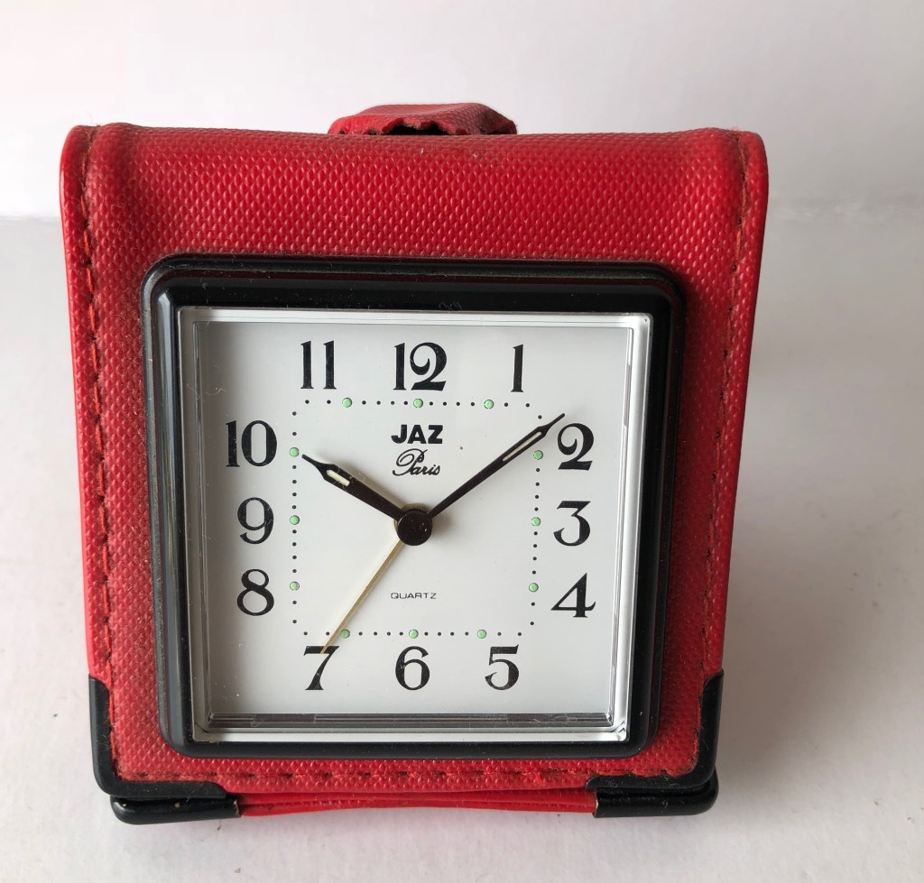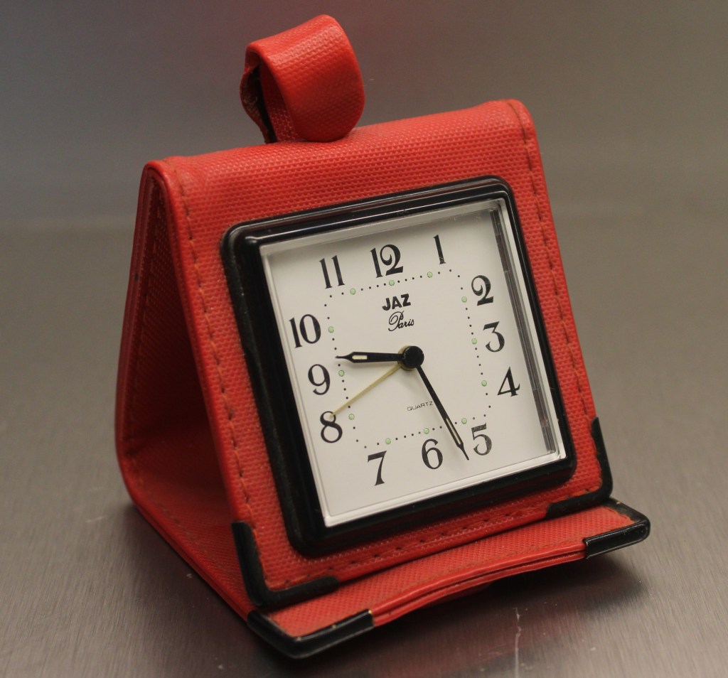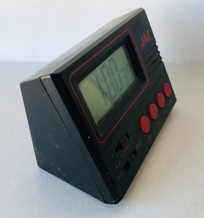5640 / 5641 réveil de voyage pliant, à répétition de sonnerie, écran LCD, nouveauté du catalogue 1991 à la page 11 disponible jusqu’en 1992. Deux couleurs disponibles: gris pale pour la réf: 5640 et noir pour la réf: 5641. Format 9 x 6 x5 cm , pile LR6, poids: 72 gr.