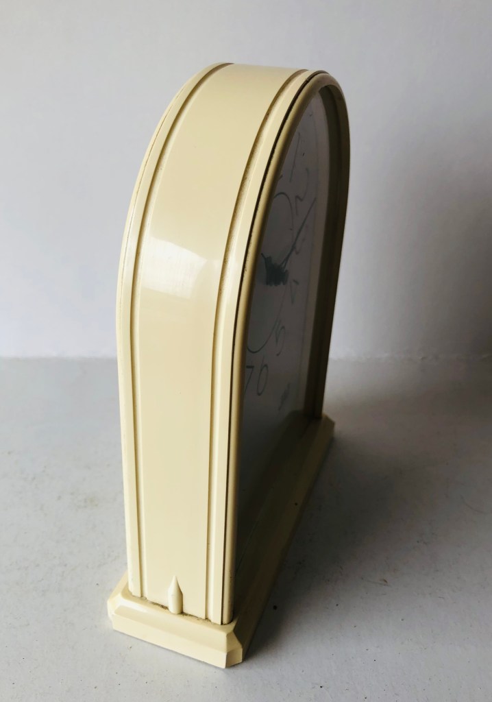 5403 , réveil de voyage , gamme Jaz Paris, porte feuille en toile rouge cousue , aiguilles noires , aiguilles et points lumineux , quartz à pile LR44 , calibre 21905, format 7,5 x 7,5 x 1,5 cm , poids 90 gr . Existe en ivoire réf. 5401 et en noir réf. 5402.