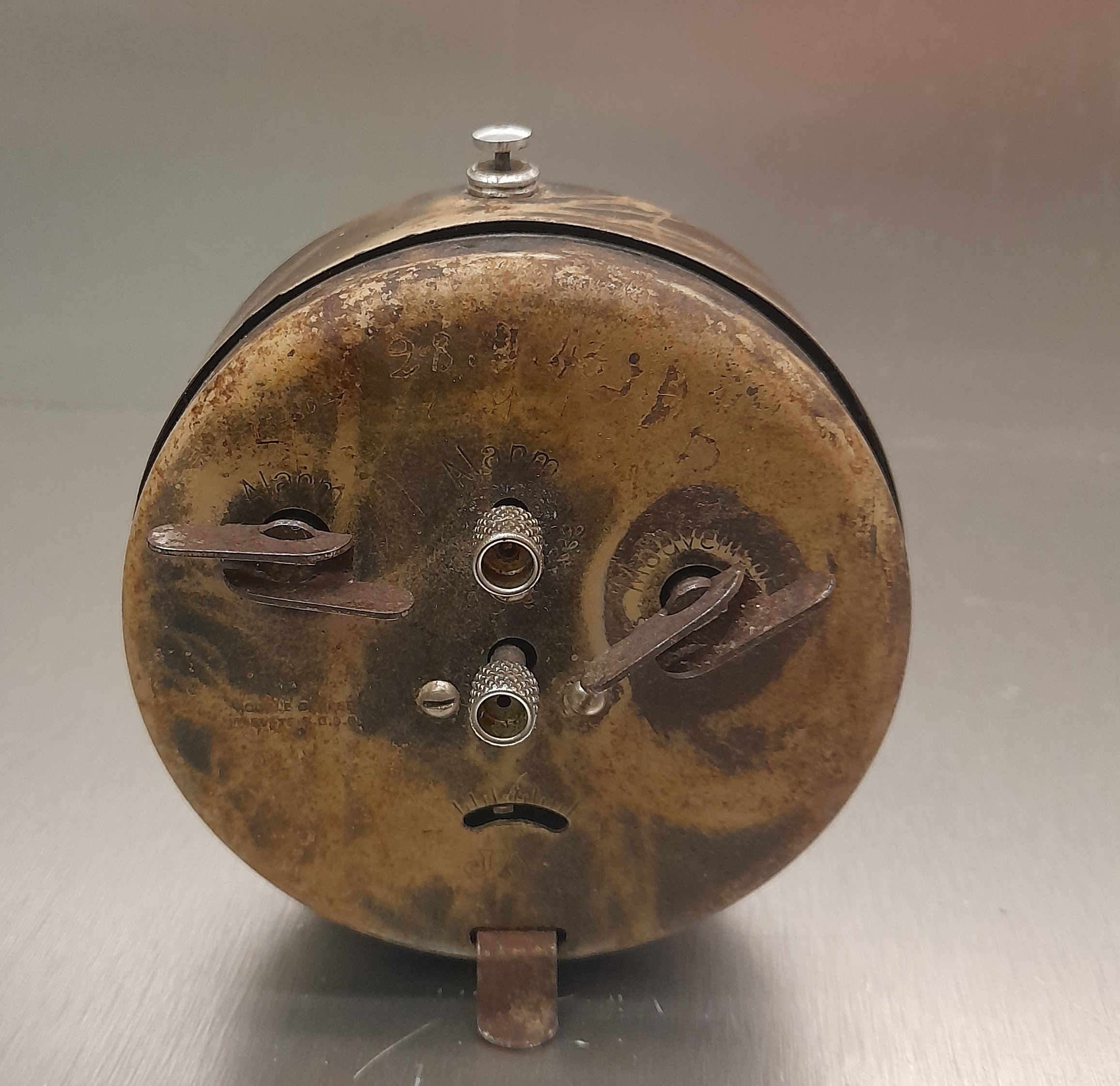 Mais la particularité du PUBLIC, par rapport aux autres réveils ronds de Jaz, apparaît en enlevant clefs et dos afin que l’absence de vis de fixation du dos devienne une évidence. Caractéristique de cette période , le dos du PUBLIC n’est pas vissé mais emboîté, on retrouve ces particularités avec le MARSIC qui lui succède en 1940, quasiment au même prix, lui aussi en entrée de gamme des gros réveils. Attention en introduisant un tournevis pour l’ouverture, le balancier n’est pas loin derrière.
